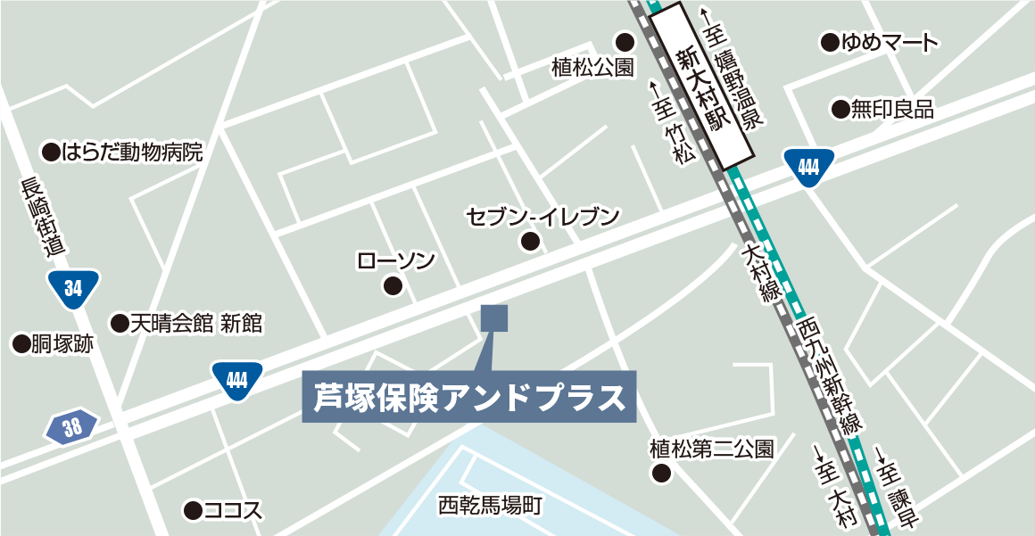 - JR新大村駅(西九州新幹線)より徒歩 約6分
